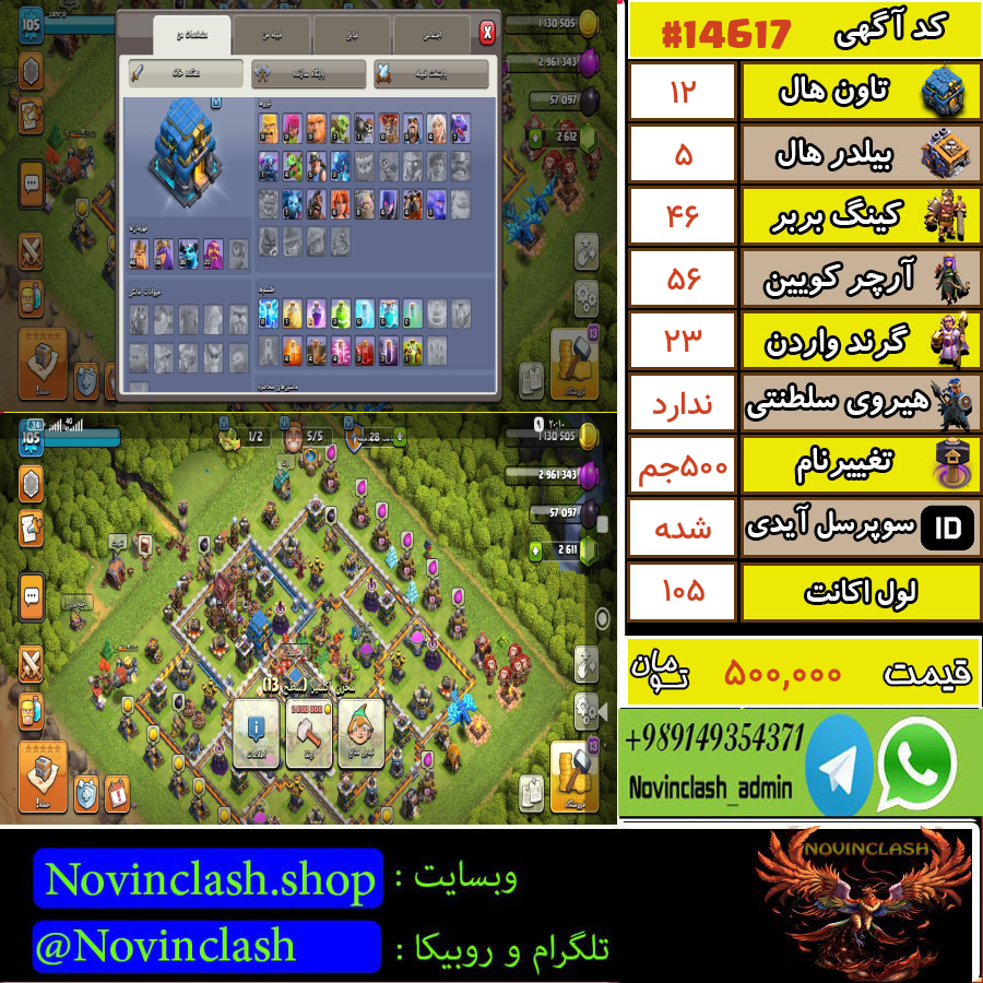• خرید اکانت کلش اف کلنز تانهال 12 لول 105 کد 14617